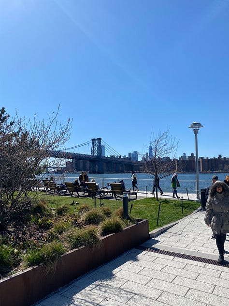 The location of my apartment. I’m loving living in Greenpoint (Brooklyn). I run along the waterfront that overlooks the Manhattan skyline at sunset a lot (see photo dump). It’s like running in a dream. So cool.
